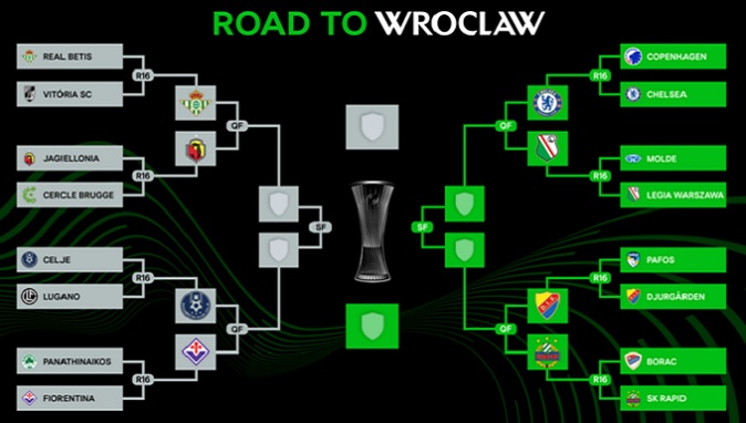 10 Nisan: Legia Varşova-Chelsea, Real Betis-Jagiellonia, Celje-Fiorentina, Djurgarden-SK Rapid