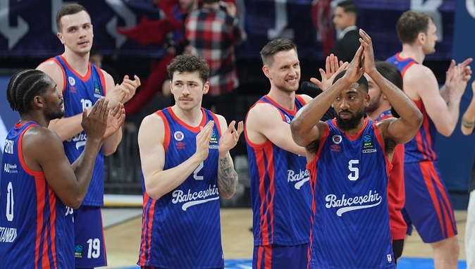 İlk 5 dakikayı 15-12 geride geçen Bahçeşehir Koleji, 11-02lık bir seri yakaladı ve ilk çeyreği 27-21 önde tamamladı. İkinci çeyrekte Şehmus Hazer ve Furkan Korkmaz’ın skor katkısıyla devre sonunda fark 12’ye çıktı: 49-37.